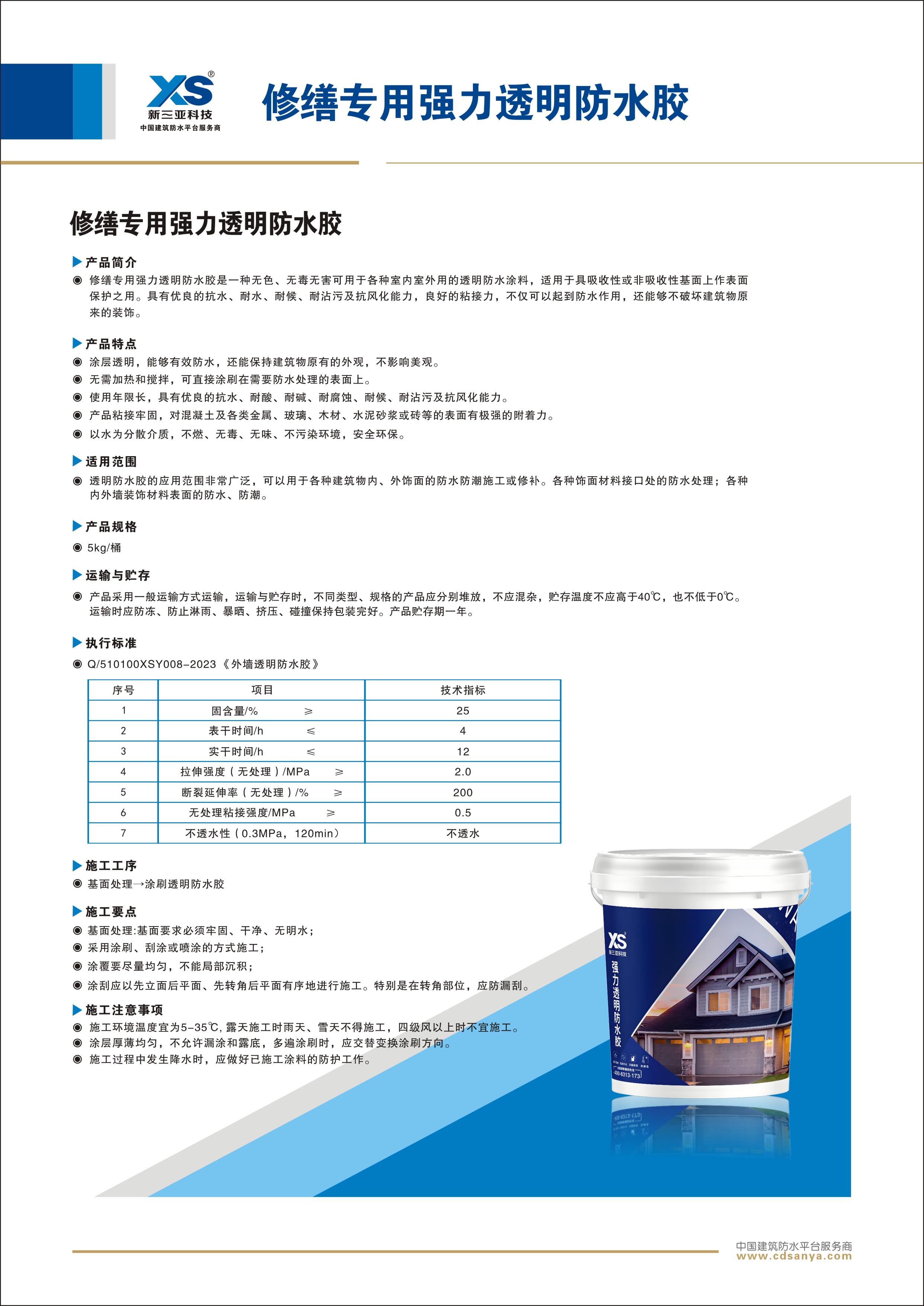 修繕專用強(qiáng)力透明防水膠是一種無色、無毒無害可用于各種室內(nèi)室外用的透明防水涂料,適用于具吸收性或非吸收性基面上作表面保護(hù)之用。具有優(yōu)良的抗水、耐水、耐候、耐沾污及抗風(fēng)化能力,良好的粘接力,不僅可以起到防水作用,還能夠不破壞建筑物原來的裝飾。